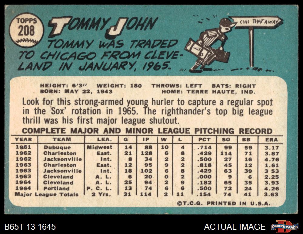 1965 Topps #208 Tommy John