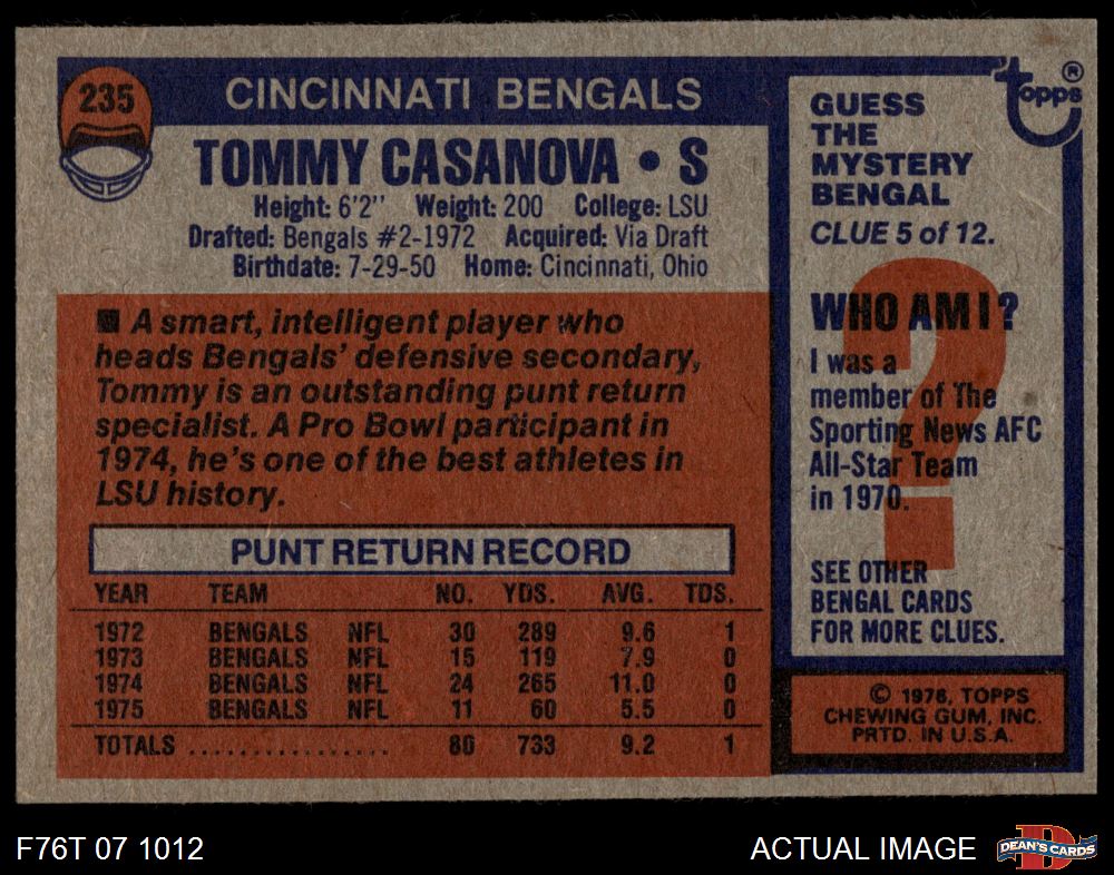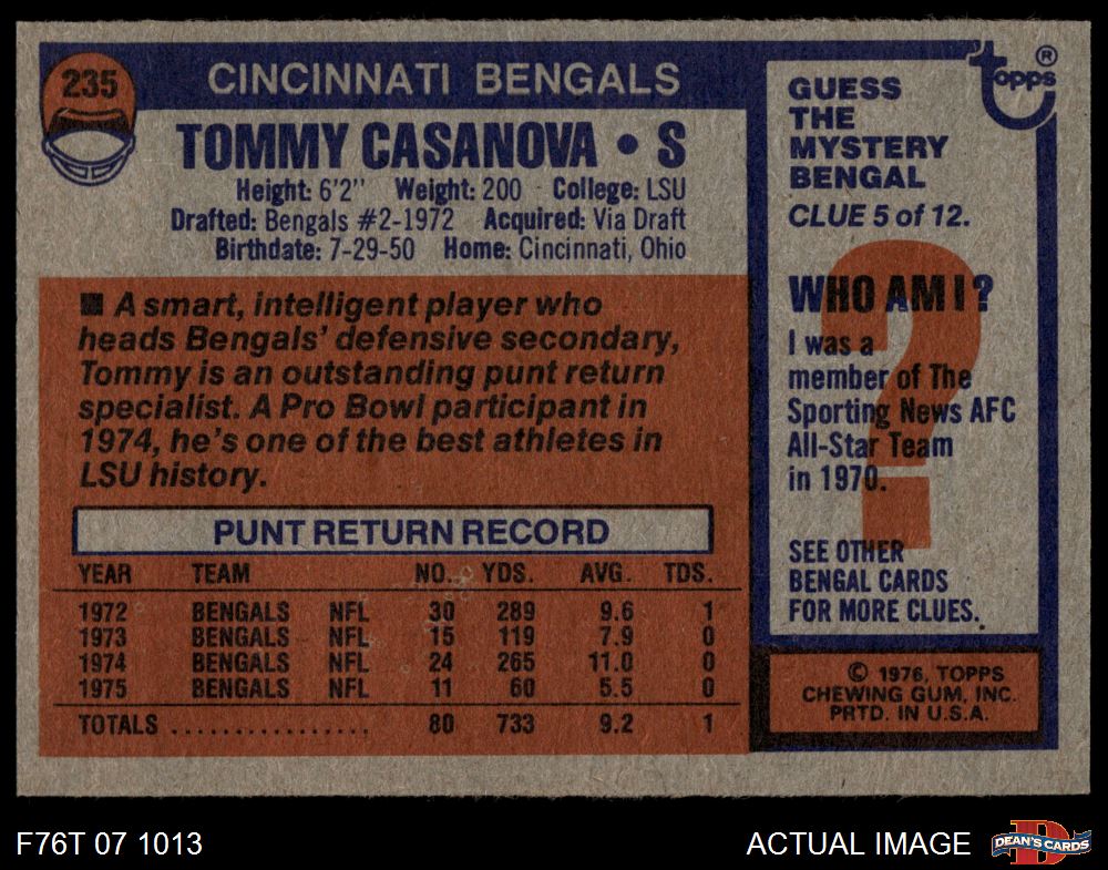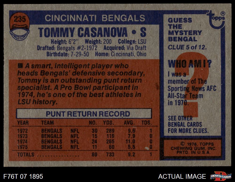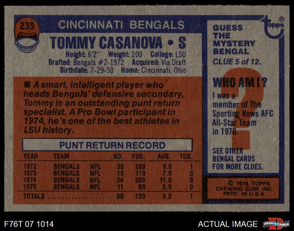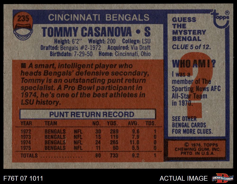 1976 Topps #235 Tommy Casanova
