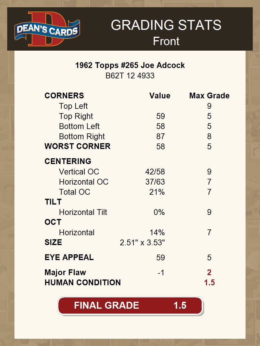 1962 Topps #265 Joe Adcock 1.5 - FAIR