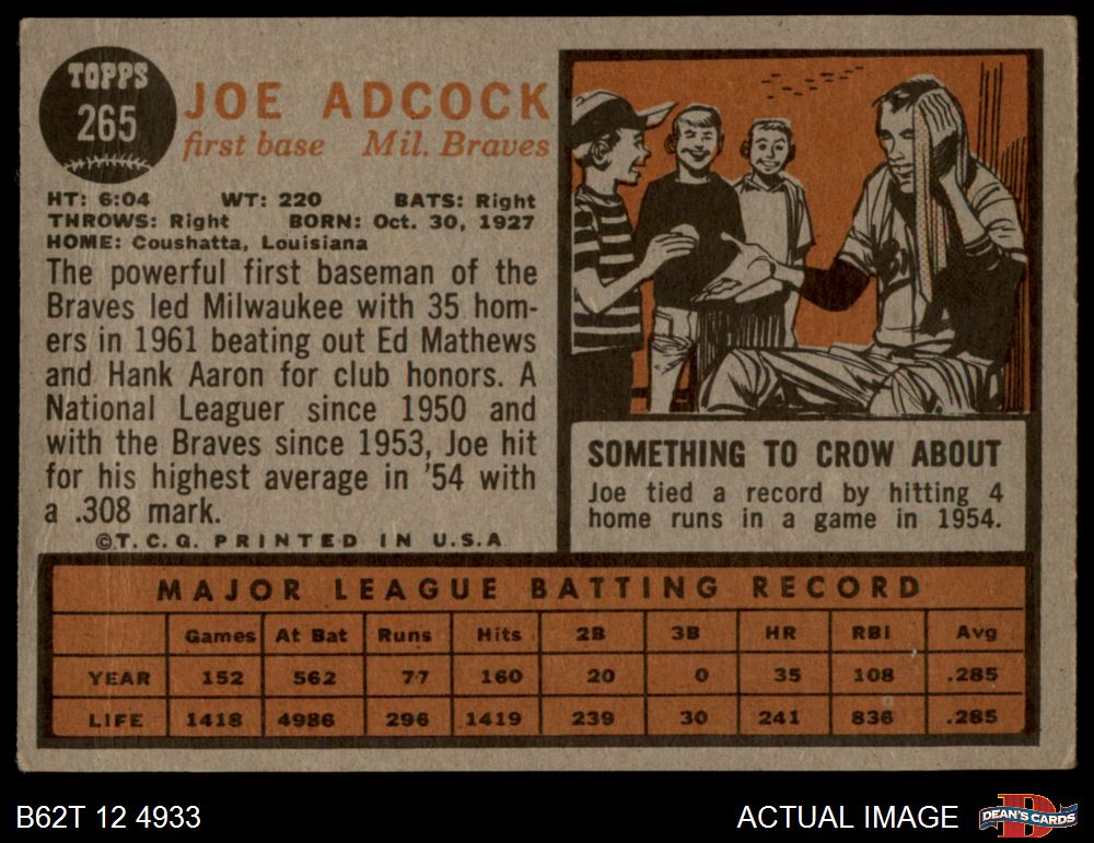 1962 Topps #265 Joe Adcock Front Thumbnail