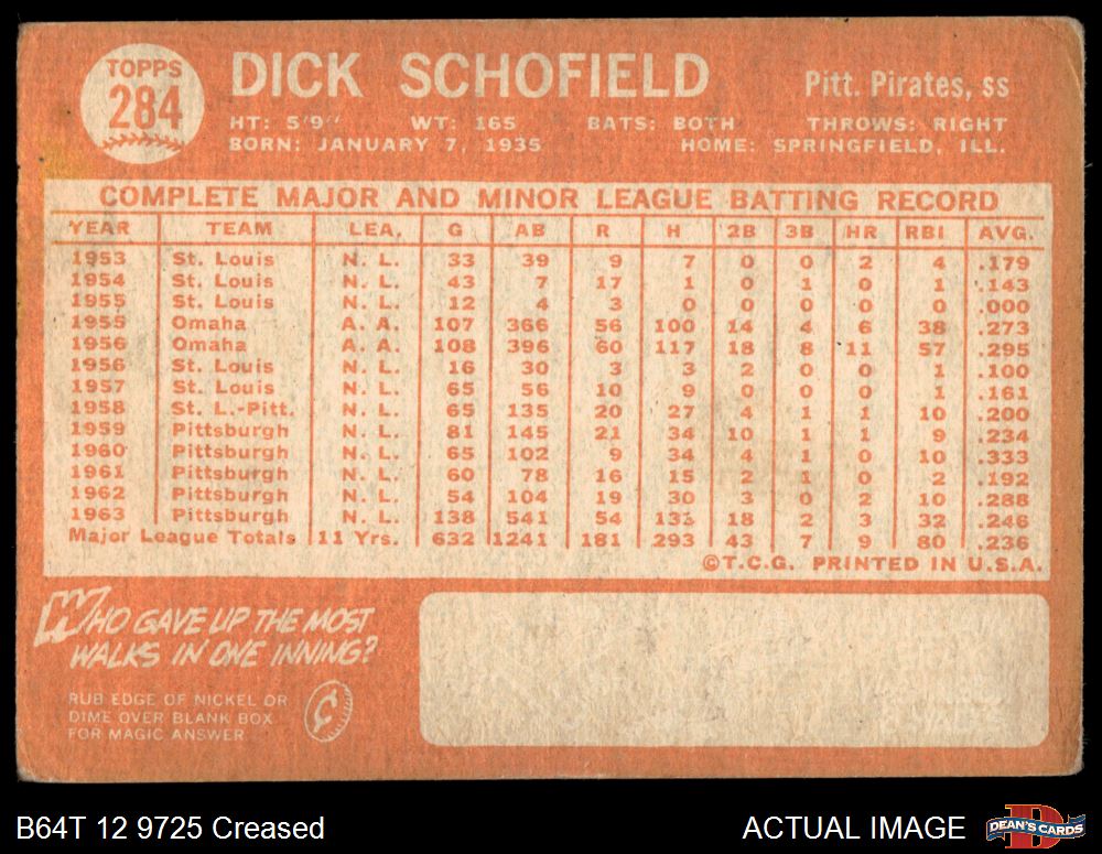 1964 Topps #284 Dick Schofield 1.5 - FAIR