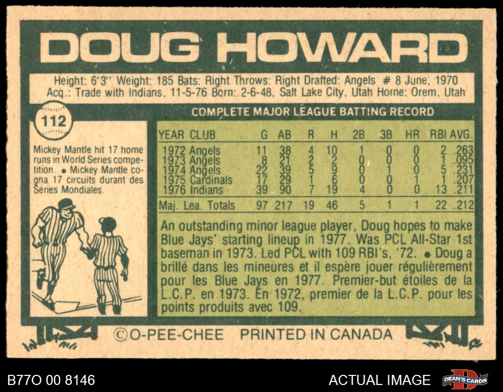 1977 O-Pee-Chee #112 Doug Howard 7 - NM