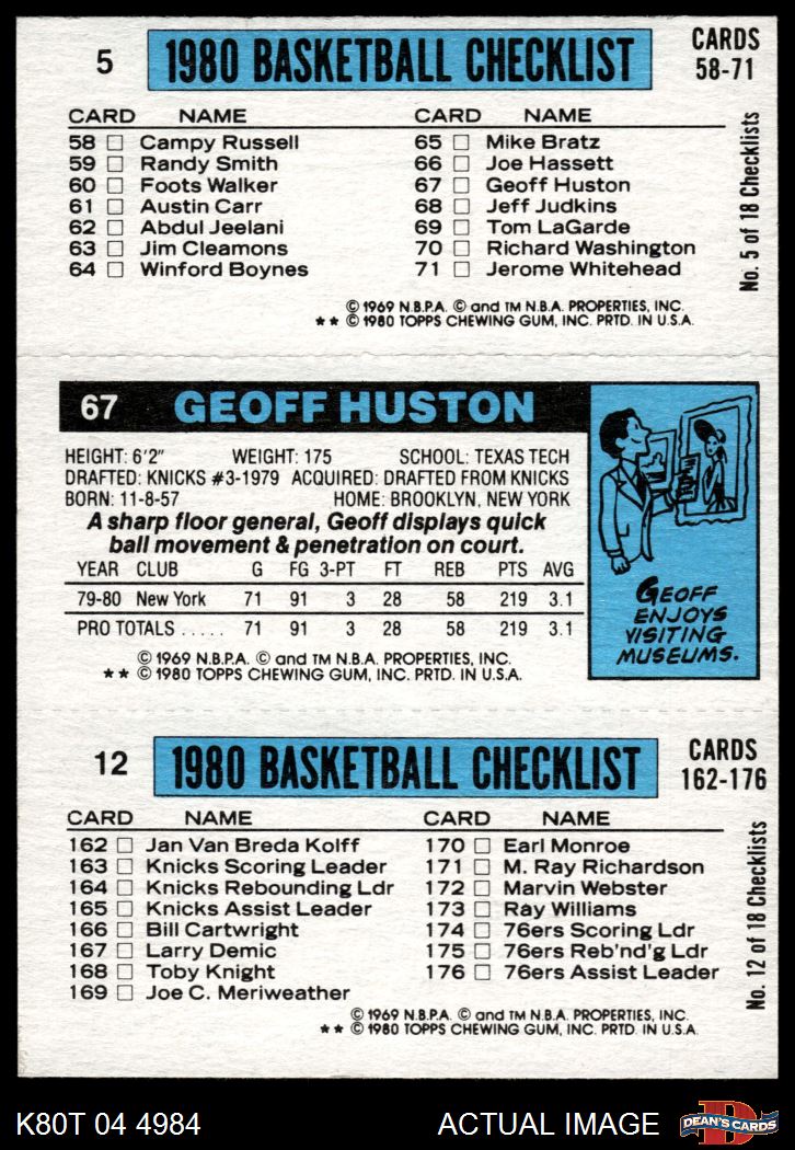 1980 Topps - Gus Williams / Geoff Huston / John Drew 12 / 67 / 5 4 - VG/EX