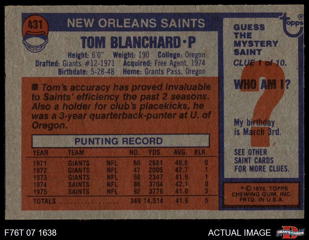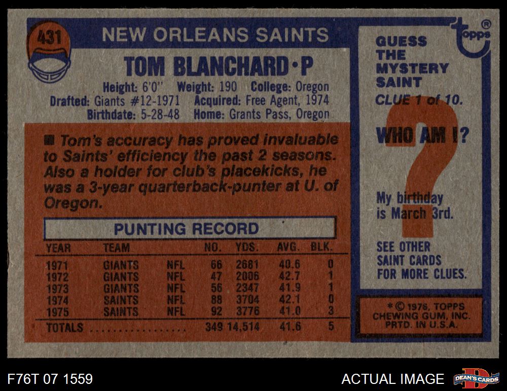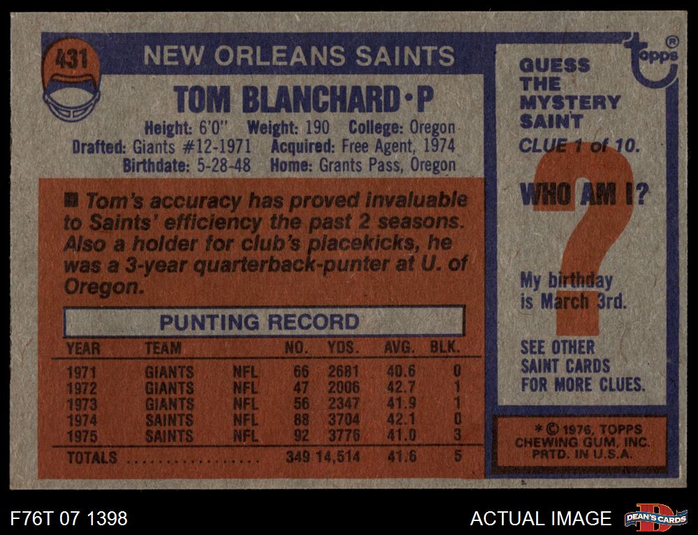 1976 Topps Football Cards (7,282 available)1976 Topps Saints (188 available)