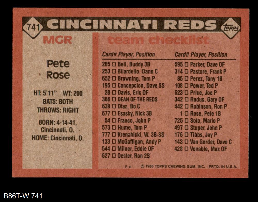 1986 Topps #741 - Pete Rose Cincinnati Reds Team Checklist 8 - NM/MT