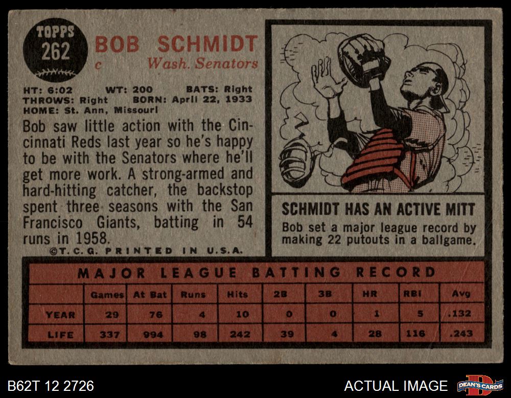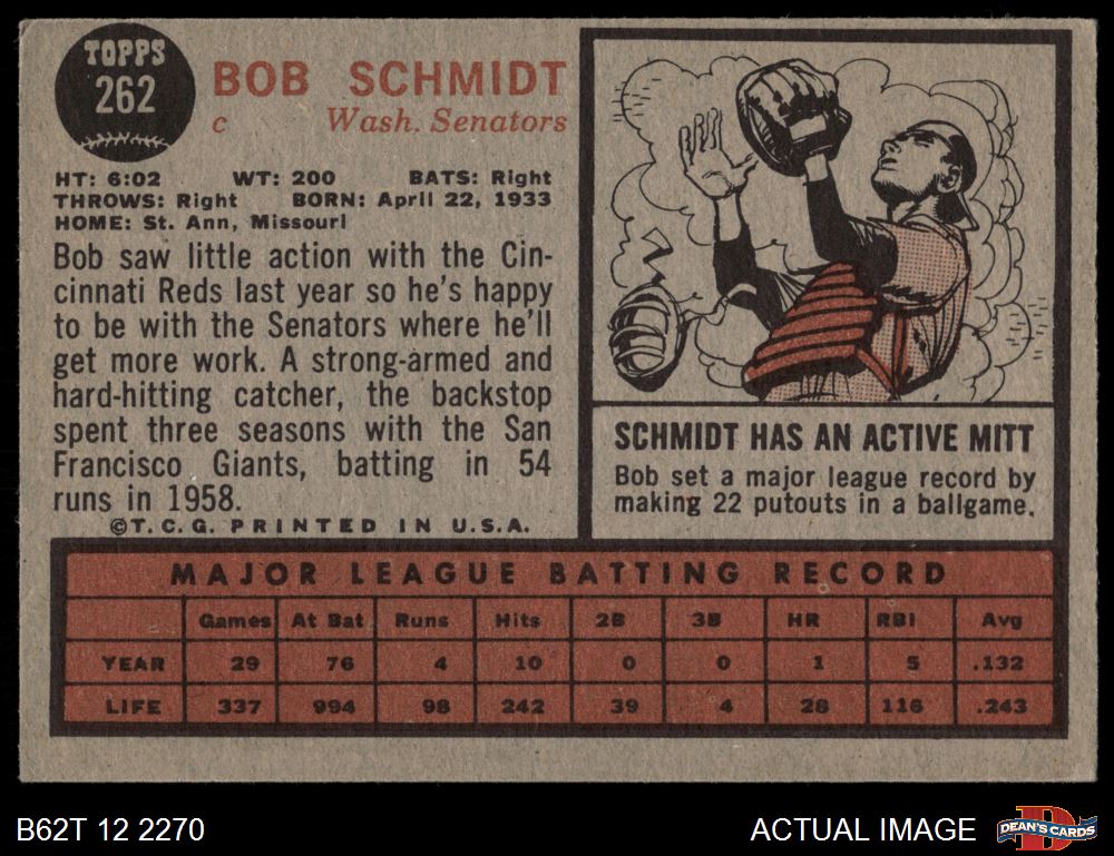 1962 Topps #262 Bob Schmidt Front Thumbnail
