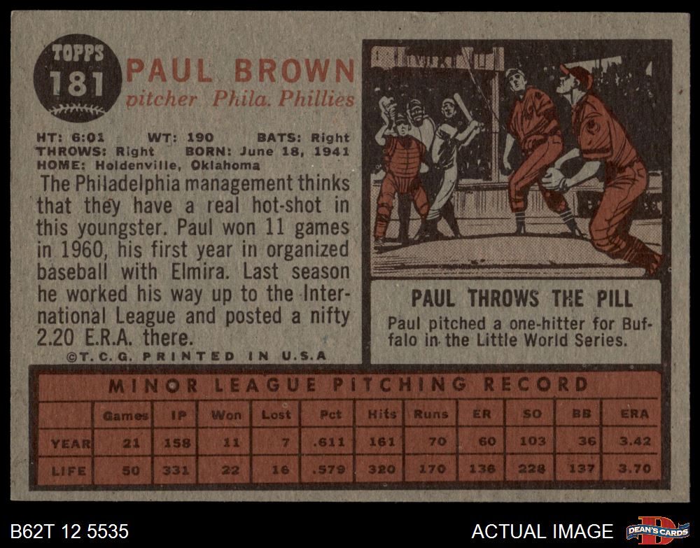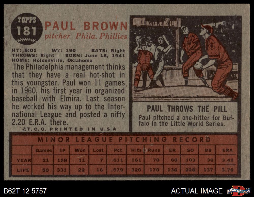 1962 Topps #181 NRM Paul Brown