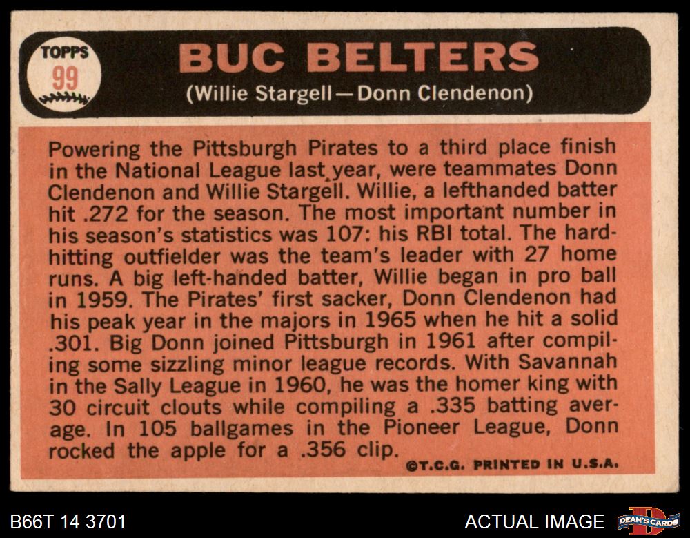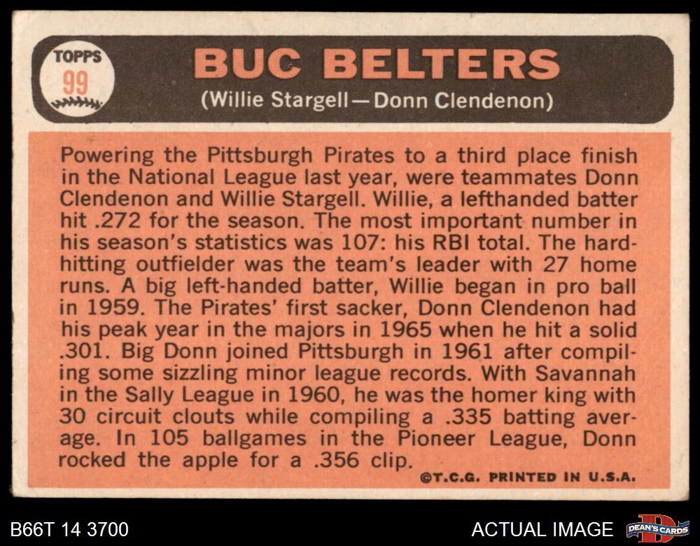 1966 Topps #99 - Willie Stargell / Donn Clendenon Buc Belters 3 - VG