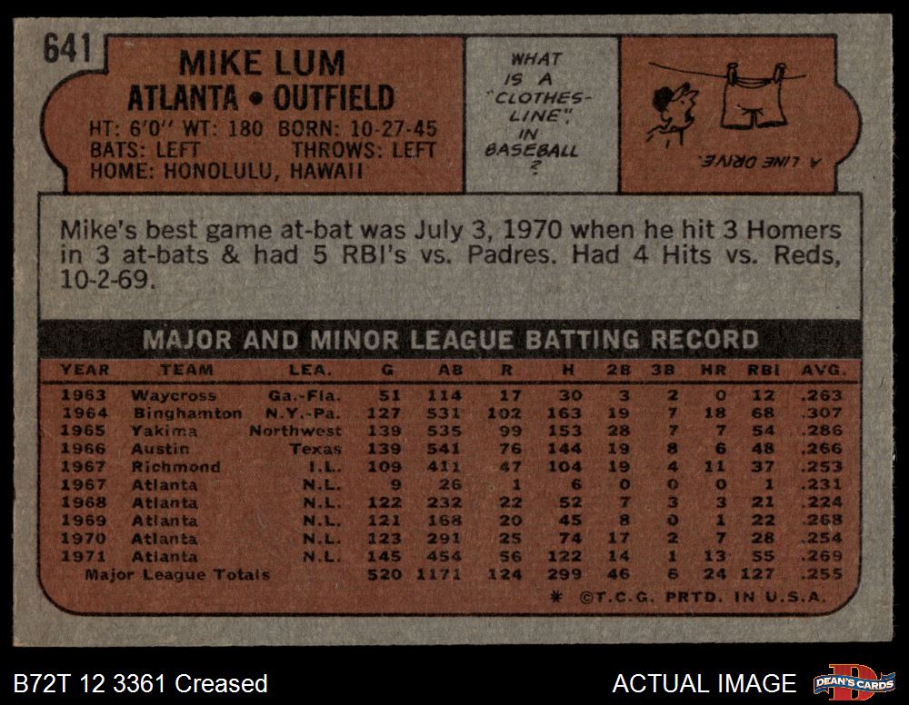 1972 Topps #641 Mike Lum