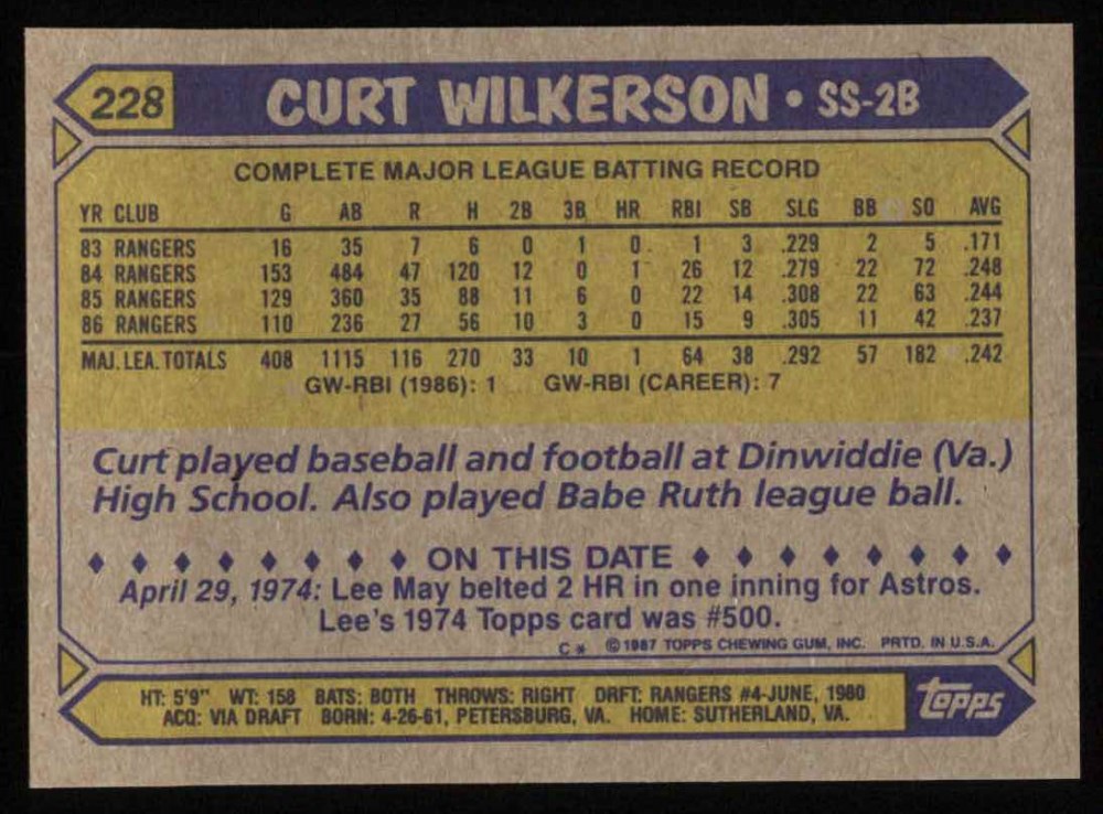 1987 Topps #228 Curt Wilkerson 8 - NM/MT