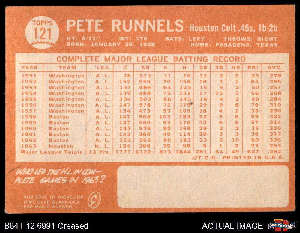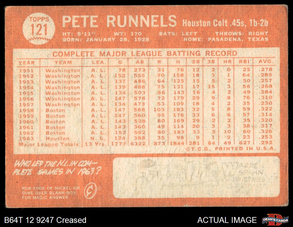 1964 Topps #121 xSPT Pete Runnels 2 - GOOD