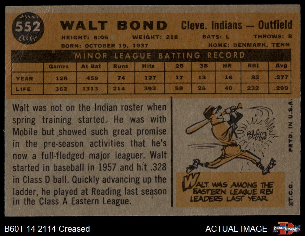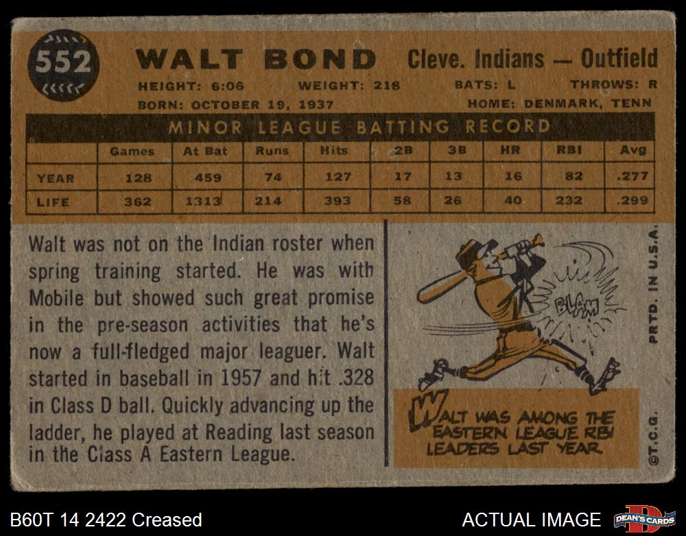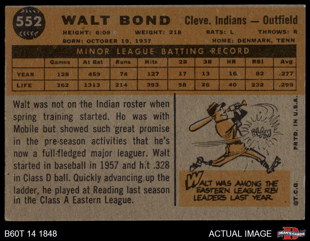 1960 Topps #552 Walt Bond