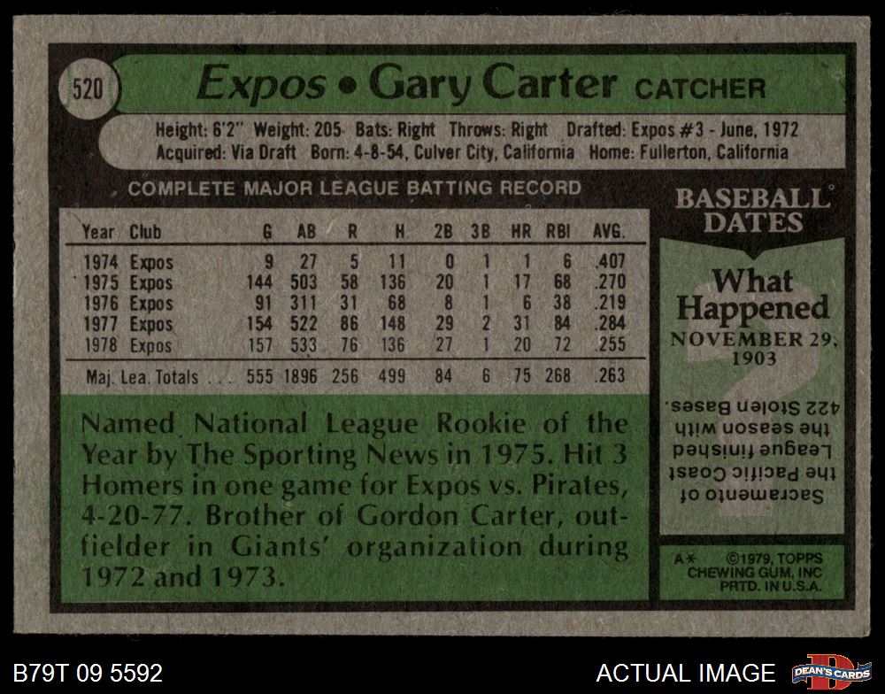 1979 Topps #520 Gary Carter 5 - EX