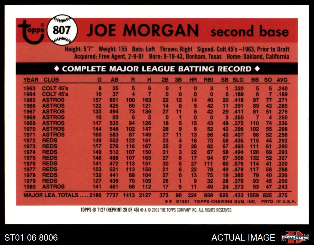 2001 Topps Traded #127 T - Joe Morgan 81 8 - NM/MT