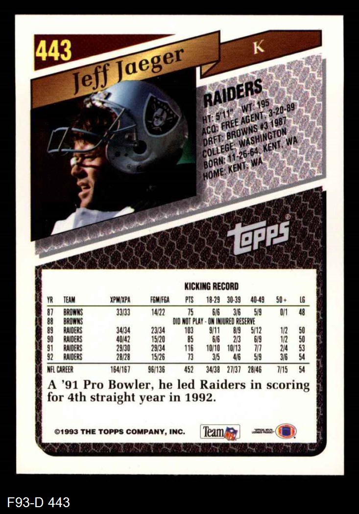 1993 Topps #443 Jeff Jaeger 8 - NM/MT