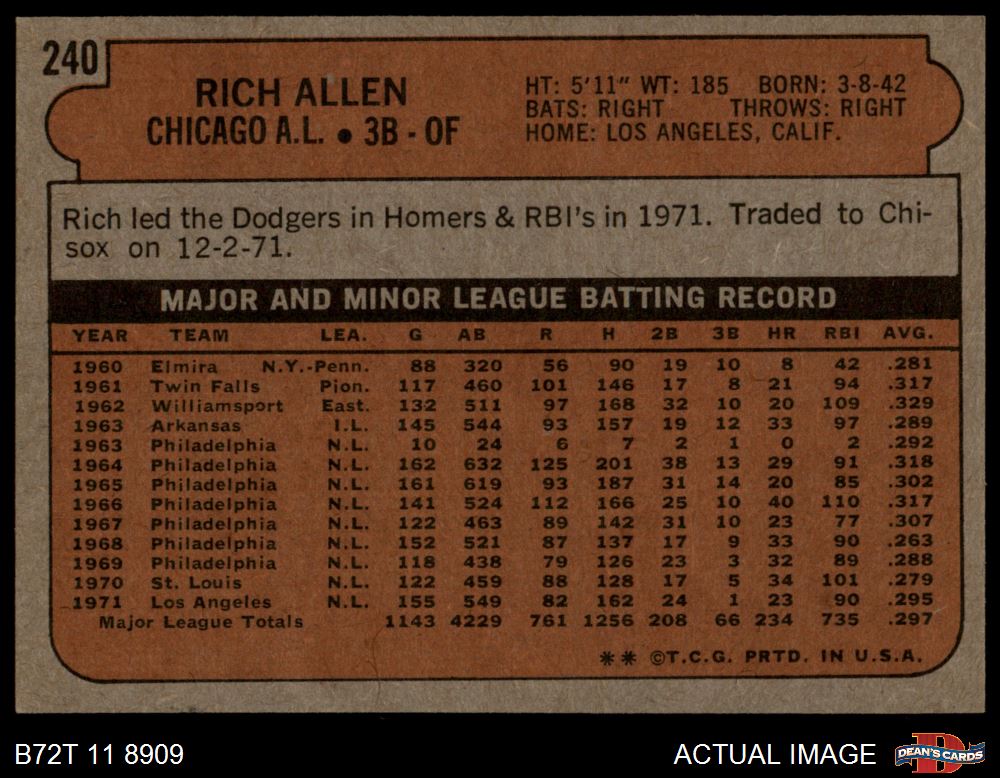1972 Topps #240 Rich Allen 6 - EX/MT